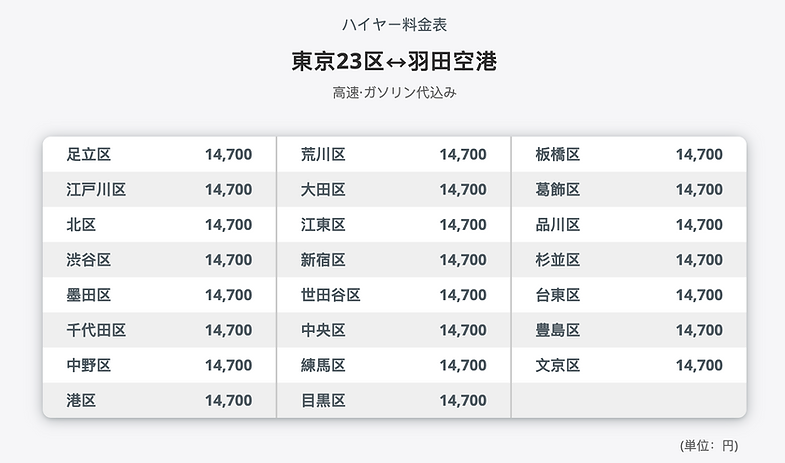 ※ 他のエリア料金は以下の方法でお問い合わせください。